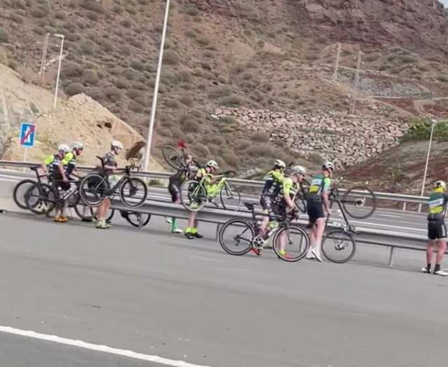 Este pasado fin de semana un vídeo que circuló por las redes sociales, mostraba cómo un batallón de ciclistas cruzaba la autopista a la altura de Taurito con la bicicleta “a cuestas” para poder seguir la ruta que los lleva desde el sur de la isla dirección Mogán. Al llegar a Taurito por la GC-500 la carretera se corta y la única vía de acceso hasta Playa de Mogán y hasta el resto de la zona oeste de la isla es la autopista, una opción que está prohibida para los ciclistas pero que no parece importarles.