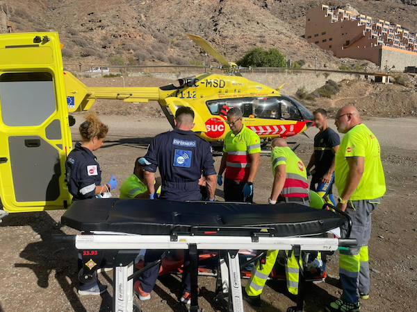 Una  vez estabilizado, fue evacuado en ambulancia  hasta una zona cercana donde tomó tierra el helicóptero medicalizado del SUC, que lo trasladó en estado crítico  al Hospital Universitario Insular de Gran Canaria.