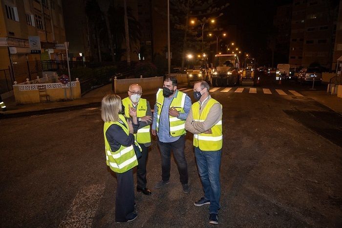 El presidente de la Corporación Insular, Antonio Morales, visitó la noche de este miércoles los trabajos de ejecución de la tercera fase del plan de repavimentación del barrio, que han sido licitados por el Ayuntamiento capitalino y que se realizan en horas de la madrugada, con el fin de evitar molestias tanto a la ciudadanía como a los conductores que circulan por zona durante el día.