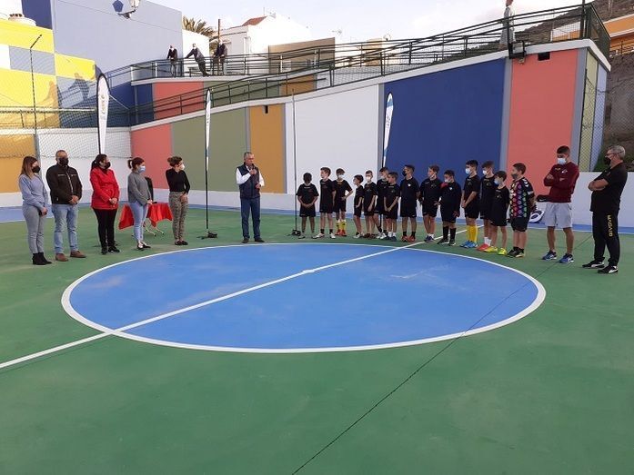 Para la reapertura fue invitado el equipo de la categoría alevín de la cadena del San Nicolás, que jugó un partido de entrenamiento para estrenarla. El grupo de Gobierno agradece al entrenador del equipo, a los jugadores y a sus familias por su predisposición para cambiar el terreno de juego por una tarde.