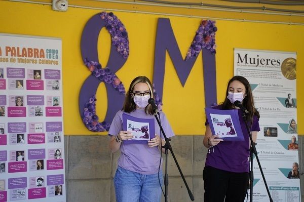 Más tarde alumnado de 2º de Bachillerato ha presentado la actividad 'Tomando conciencia', que ha consistido en la realización de un mural en el que han plasmado a través de mensajes escritos a mano el camino que todavía queda por recorrer para alcanzar la igualdad. Los de 1º de Bachillerato, por su parte, han hecho otro mural sobre las esculturas que podemos encontrar alrededor del mundo en homenaje a figuras femeninas como por ejemplo Clara Campoamor o Rosa Chacel.