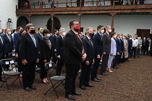 El presidente del Gobierno, Pedro Sánchez, ha acompañado a SS.MM. los Reyes en el Acto de homenaje al pueblo de La Palma, celebrado este sábado en Santa Cruz de la Palma, el día previo a la XXVI Conferencia de Presidentes organizada también en la isla, en Los Llanos de Aridane. Con estas dos importantes citas en la isla, el Gobierno ha querido poner en valor la respuesta de los palmeros y palmeras ante la erupción del volcán Cumbre Vieja.