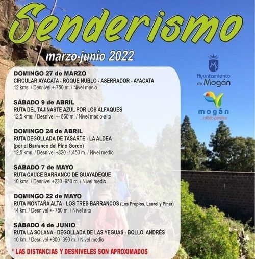 Después de la suspensión del servicio debido a la pandemia, se reanudan las actividades de senderismo en el municipio de Mogán, que tendrá su primera actividad este domingo 27 de marzo hasta el próximo 4 de junio.