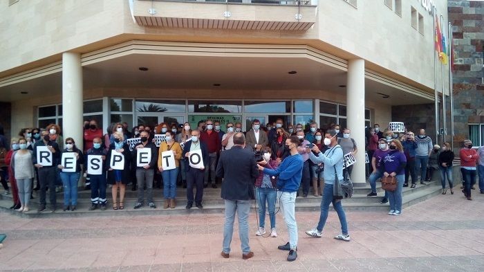 Este miércoles seis de abril cerca de cien trabajadores del Ayuntamiento de Santa Lucía y algunos representantes políticos, se han concentrado a las puertas de las oficinas municipales de Vecindario, para exigir a los representantes políticos respeto a los empleados municipales. Esto se sucede después de que el pasado jueves, durante el pleno municipal, el concejal de Agrupación de Vecinos, Jose Luis Araña, increpara con insultos y estuviera a punto de cometer una agresión a un empleado público al grito de “te doy un piñazo que te vas a enterar, maricón de mierda”, y que pudo evitarse gracias a la actuación de varios compañeros de su partido que le agarraron.