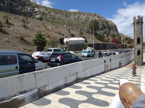 Varón de 32 años resultó herido grave de un accidente de tráfico en moto en la subida a Fataga.