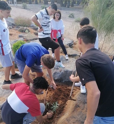 Alumnado del Ciclo Formativo Básico de Administrativo, del IES Tamara, realizó recientemente una plantación de especies endémicas de las costas de Canarias en el Parque Tony Gallardo de Maspalomas.