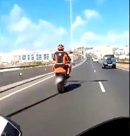 A través del análisis de unas imágenes compartidas en las que se observa como el conductor de una motocicleta que circula por el carril izquierdo de una vía interurbana, realiza un “caballito” en el curso de la aceleración rebasando a otros vehículos.