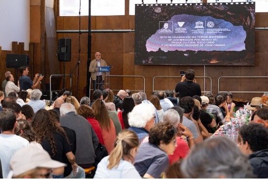 “Este Patrimonio Mundial que nos sitúa junto a las pirámides de Egipto o las cuevas de Altamira lo han hecho fundamentalmente ustedes y sus ancestros”, insistió el director técnico del Paisaje Cultural, José de León, ante la audiencia, en su mayor parte habitantes de El Carrizal, Juncal, Los Hornillos, Lugarejos y prácticamente todos y cada uno de los pagos de la cumbre. Salvo Marquitos que, a sus 102 años, se quedó en la finca porque tenía que regar las papas. También tuvo un recuerdo especial para quienes ya no están, aunque permanecen en la memoria igual que permanecen los grabados aborígenes en la toba volcánica.
