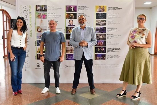El alcalde de Santa Lucía de Tirajana, Francisco García, y la concejala de Cultura, Yaiza Pérez, presentaron este jueves la programación semestral en el escenario del teatro Víctor Jara. Tras la actuación de humor Pantomima Full el pasado sábado, la programación continúa el próximo sábado 10 de julio con el espectáculo familiar ’10 años de Pica Pica’.