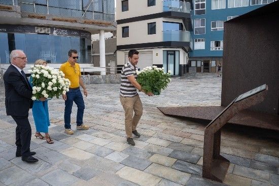 El consejero insular, Miguel Hidalgo, junto a varios miembros de la Asociación de Afectados del Vuelo JK5022, surgida tras la catástrofe aérea del vuelo JK5022 operado por la compañía Spanair (Madrid - Gran Canaria) ocurrida el 20 de Agosto de 2008 en el Aeropuerto de Madrid-Barajas, en el que perecieron 154 personas y sobrevivieron 18 (15 adultos y 3 niños). El acto consistió en la colocación de decenas de rosas blancas en el conjunto escultórico ‘Luces en el vacío’, que se encuentra en la zona de La Puntilla (playa de Las Canteras) en la capital grancanaria.