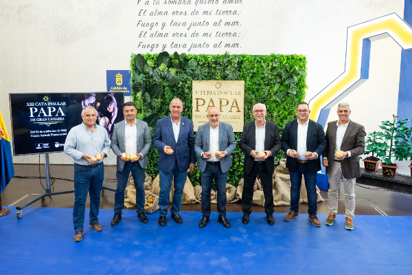 El presidente del Cabildo de Gran Canaria, Antonio Morales, junto al alcalde de Teror, Sergio Nuez, y el consejero insular de Sector Primario, Miguel Hidalgo, junto a responsables del sector de ambas instituciones, presentaron la V Feria Insular de la Papa de Gran Canaria, que se celebrará del 29 de septiembre al 2 de octubre en Teror. Esta actividad, al igual que la XIII Cata de la papa de Gran Canaria tienen como objetivo poner en valor la papa cultivada en la isla. Además, se celebrarán Jornadas técnicas, una exposición y otras actividades que acercarán a los asistentes las virtudes gastronómicas de la papa insular.