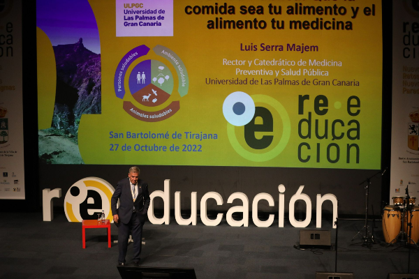 El papel de la escuela como transmisor de valores es fundamental. Y por eso en el I Foro de Reeducación; Nuevos Retos, Nuevos Paradigmas, se quiso hacer un hueco a la ‘educación alimentaria’ Y para eso vino el rector de la ULPCG hasta Expomeloneras. Para hablar de cómo se come bien; pero desde un punto de vista diferente. “Estamos acostumbrados a hablar de pirámide alimentaria pero hay que hablar de sistema alimentario”. Es un concepto nuevo que tiene que ver con criterios de sostenibilidad y que no sólo tiene en cuenta el impacto de la alimentación en la salud humana. También tiene que ver con el modo en el que se producen los alimentos y tiene en cuenta la salud de los ecosistemas y la salud y el bienestar de los animales. Serra habló de valores éticos y de responsabilidad como parte integrante de esa Dieta Mediterránea que “es sin duda alguna la mejor y la más saludable del mundo”.