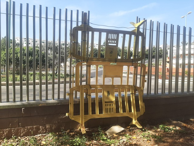 El perímetro de este parque estaba hecho con un vallado de acero inoxidable. Ahora faltan trozos en los que interponen, para remediarlo, unas vallas de plástico. Esto muestra una imagen pésima a cientos de personas que pasan a diario por la zona y es lo que ven desde el exterior.