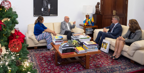 La consejera estuvo acompañada por el edil de Mercados de Telde, Servando González, el concejal de Desarrollo Local y Comercio de Gáldar, Agustín Martín, y la concejala de Sector Primario y Mercados de Guía, Teresa Bolaños. A ellos se unieron los gerentes del mercado del Puerto, José Rojas, de Altavista, Antonio Gómez, de Vegueta, Santiago Bolaños, y Central, Carmen Delia González, además de la vicepresidenta de la cooperativa de puesteros de Telde, Ana del Pino Jiménez, y el director del departamento de Comercio de la Cámara de Comercio, Ramón Redondo.