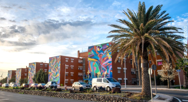 Su propio autor, que ha plasmado su pintura en muros, paredes y fachadas de medio mundo, identifica el conjunto como una de sus mejores obras, una serie única en un escenario que, antes de recibir la invitación del Ayuntamiento de Agüimes, él nunca habría imaginado. De inspiración abstracta, las formas geométricas proyectan dinamismo y la explosión cromática inunda de luz un entorno hasta ahora ocre y apagado. Se crea así un nuevo lenguaje artístico, vivo, libre y colorista, con el que se construye una relación más abierta e inclusiva entre el barrio y su entorno.