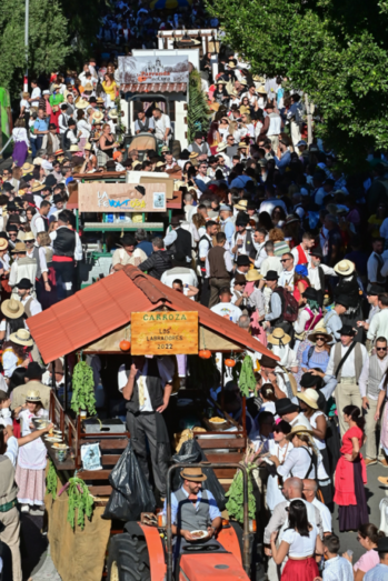 “Los amigos de Joni” es el nombre de la primera carreta. Joni López Duarte se fue demasiado pronto, con apenas 45 años en septiembre de 2018, al luto se sumó la pandemia, pero este año amigos y familiares quisieron que el antiguo notificador municipal e investigador de nuestras tradiciones estuviera presente. Un hermano de Joni, Esteban López,  atiende desde la carreta las peticiones de comida y bebidas de parranderos y acompañantes. Hay chicharrones, hay queso, hay papas arrugadas, hay mejunje,  hay aceitunas, hay de todo menos prisa, por eso un recorrido de poco más de un kilómetro se tarda varias horas en hacer, en Los Labradores hay que vivir cada minuto con intensidad.