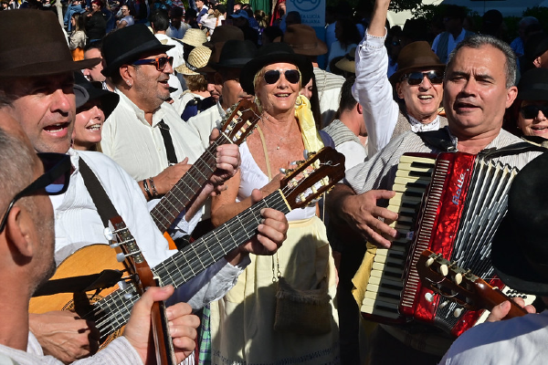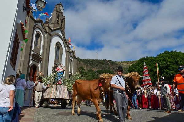 Desde las 10 de la mañana las carretas y carrozas empiezan a colocarse en los puestos de salida, en un lado del pueblo. Poco a poco van llegando las parrandas. Apenas termina la misa canaria en la iglesia, empiezan a sonar los primeros timples y guitarras de las parrandas. No falta el acordeón y el pandero. En una parranda junto a El Mirador la cantante y actriz Tania Gil canta: “Señores no me lo creo, señores ay qué alegría, que después de estos dos años, estamos de romería”. El verseador satauteño José María Dávila, aparece con el timple al hombro y también se incorpora a una parranda como uno más.