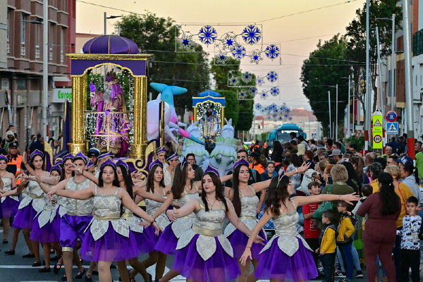 La cabalgata de los Reyes Magos recorrió las calles de Vecindario ante miles de niños, niñas y familias que pudieron disfrutar saludando a los reyes y a su comitiva formada por más de 180 personas, algunas de ellas usuarias de los centros de discapacidad municipales. El taller de animación del Ayuntamiento y personas y grupos que se apuntaron de forma voluntaria, formaron también parte de la comitiva real.