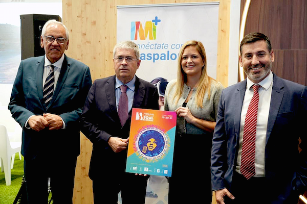 El alcalde de San Bartolomé de Tirajana, Marco Aurelio Pérez Sánchez, ha presentado este mediodía en Fitur, la Feria Turística de Madrid, el cartel anunciador del próximo Maspalomas Costa Canaria Soul Festival, elaborado por el ilustrador grancanario Noboru Takahashi.