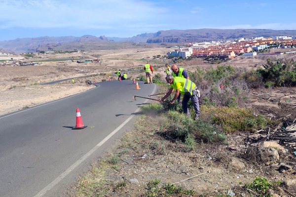 “El operativo humano que está desarrollando ese trabajo ya ha actuado a lo largo de la carretera de acceso al Colegio Almas y también en las poblaciones de Aldea Blanca, El Tablero, Montaña de La Data, El Hornillo, Sonnenland y Calderín, y prosiguen con la tarea, pues su contrato es de nueve meses y finalizará el próximo mes de junio”, informa la octava teniente de alcalde que dirige las concejalías de Vías y Obras y Parques y Jardines, Araceli Armas Cruz.