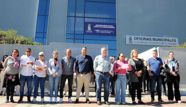 Como cada miércoles último de mes, el Ayuntamiento de San Bartolomé de Tirajana ha guardado hoy un minuto de silencio por las mujeres asesinadas a causa de la violencia machista. En el acto presidido por el alcalde Marco Aurelio Pérez Sánchez han participado empleados y empleadas del Consistorio y también concejales del gobierno y de la oposición.