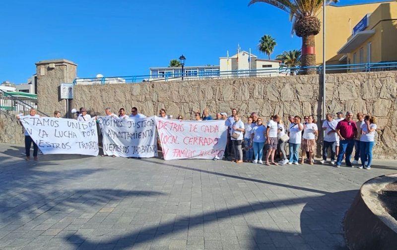 Durante la mañana de hoy los 50 empleados, y varios vecinos del municipio han arropado al empresario Pablo González en su reivindicación de buscar soluciones por el obligado de sus restaurantes por parte del Ayuntamiento de Mogán.