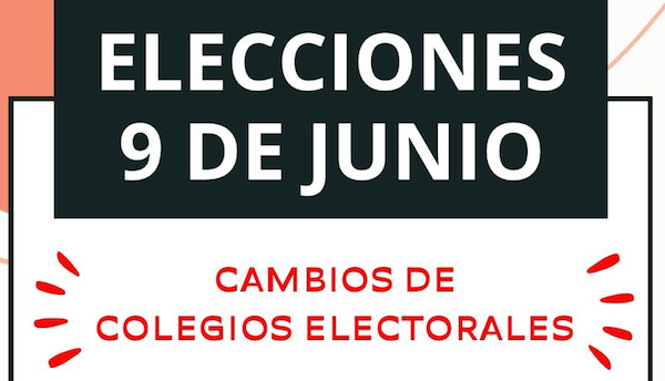 Las personas que acudan a votar en las Elecciones Europeas de este domingo 9 de junio deberán tener en cuenta los cambios que afectan a cuatro colegios electorales que han sido trasladados de lugar.
