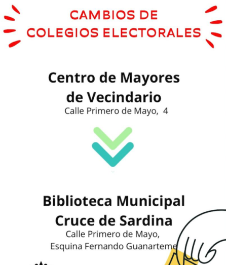 Por último, quienes votaban en el Centro de Mayores de Vecindario, en la calle Primero de Mayo, en las Elecciones Europeas de este domingo deberán votar en la Biblioteca Municipal del Cruce de Sardina ,en la calle Primero de mayo esquina Fernando Guanarteme.