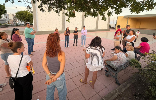 Una veintena de madres y vecinos del barrio de Las Rosas mantuvieron este miércoles un encuentro con la concejala de Parques, Jardines y Playas del Ayuntamiento de Agüimes, Juani Martel, con el objetivo de plantear propuestas de mejora en las infraestructuras infantiles y los espacios públicos de la zona. La reunión surgió a raíz de la solicitud de una madre del barrio, a la que posteriormente se sumaron otros vecinos y vecinas interesados en colaborar en la mejora del entorno común.