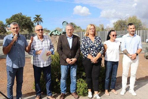 Como acto conmemorativo del Día Mundial del Patrimonio que tendrá lugar este domingo, el alcalde de San Bartolomé de Tirajana, Marco Aurelio Pérez Sánchez, reinaguró este viernes la escultura ‘Agua y leña’ del escultor Máximo Riol Cimas, junto a la Charca de Maspalomas, que ha sido sometida a un proceso de restauración por la Concejalía de Cultura y Patrimonio Histórico.