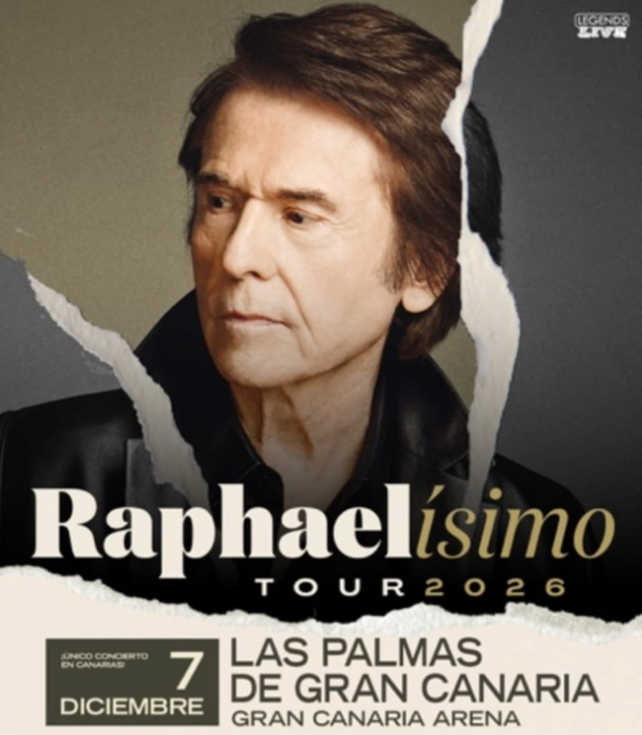 Raphael, una de las grandes leyendas de la música en español, ha anunciado su único concierto en las Islas Canarias dentro de su gira Raphaelísimo. La cita será el 7 de diciembre de 2026 en el Gran Canaria Arena, en Las Palmas de Gran Canaria, dentro del prestigioso ciclo Legends Live.