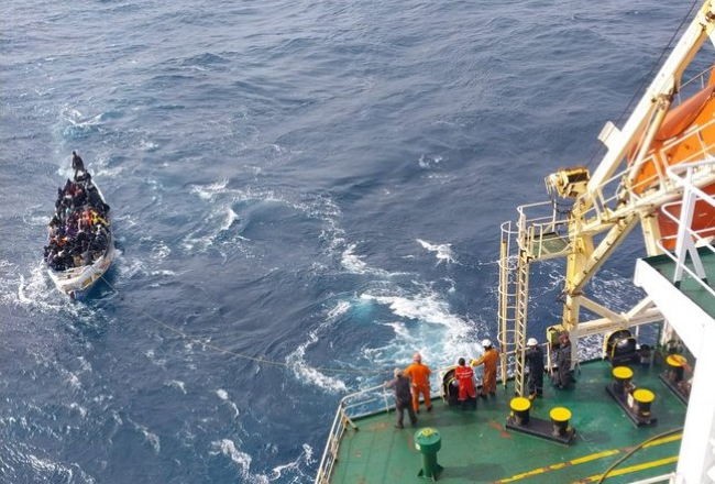 La patera, que se localizó a unos 275 kilómetros al sureste de El Hierro, fue interceptada por la guardamar Urania con la colaboración de los buques Sarah M y Eurostar, tras una intensa operación de búsqueda y rescate en condiciones adversas de mar con oleaje de hasta tres metros y fuertes vientos.