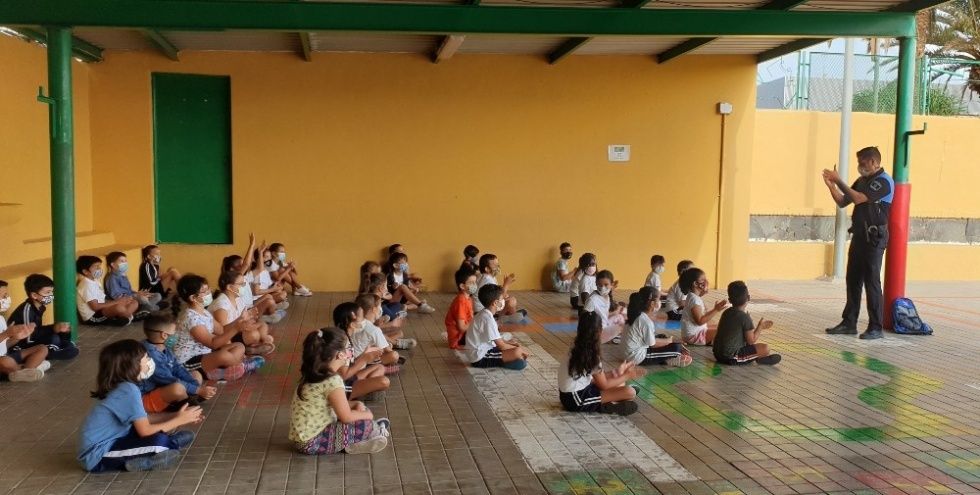 El programa de formación de este curso 2021-2022 se reanudó en el primer trimestre en el colegio Tagoror, la Zafra, Tamarán y Cerruda. En enero han comenzado nuevamente las clases en el resto de centros educativos. El objetivo principal es fomentar la cultura de seguridad entre los escolares y adquirir hábitos de conductas responsables. Para hacer más atractivas las clases que se dan a alumnos y alumnas de infantil 5 años, segundo, cuarto y sexto de primaria la mascota de la policía local de Santa Lucía de Tirajana, Gofiote, asiste a algunas de las clases y participa en la entrega del carné infantil de tráfico y camisetas que se dan cuando finaliza la formación.