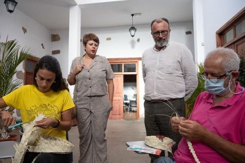 La consejera de Industria, Comercio y Artesanía del Cabildo de Gran Canaria, Minerva Alonso, visitó este jueves un curso de cestería de palma que está impartiendo la FEDAC, en colaboración con el Ayuntamiento de Santa Lucía de Tirajana, en la Casa del Artesano de Vecindario. El objetivo de esta formación es la recuperación de las técnicas y tipologías de este oficio ancestral ejercido en este municipio desde hace varios siglos. Para el desarrollo de este curso cuentan con Elba Cruz, artesana que forma parte de una familia que, durante varias generaciones, ha desarrollado este oficio en el pago de Ingenio.